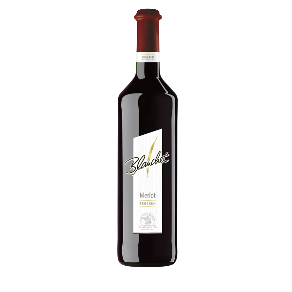 Blanchet Merlot - trocken - ist ein betont fruchtiger Rotwein, der saftig und voll am Gaumen Lust auf den nächsten Schluck macht. Sein Duft erinnert an dunkle Beeren, sein vollmundig-samtiger Geschmack lässt ihn für Liebhaber von Rotweinen ohne Ecken und Kanten zur idealen Wahl werden. Er passt perfekt zu dunklen Fleischgerichten und zu Braten, sowie als Begleiter von Pasta mit kräftiger Sauce.