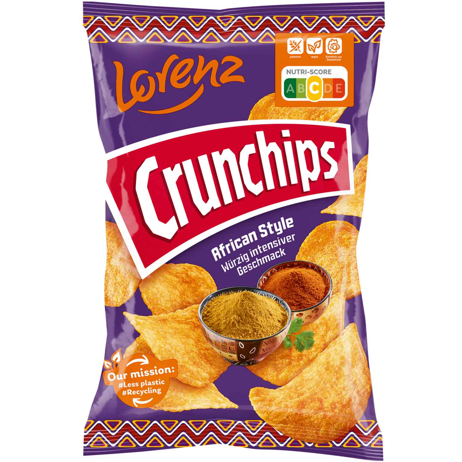 Knusprig und exotisch. Crunchips African Style feiern den Geschmack des heißen Kontinents. Die krossen Kartoffel-Chips mit dem crunchigen Biss nehmen den Gaumen mit aromatischen Gewürzen wie Koriander, Kurkuma und Fenchel auf eine "Reise" in den Süden und lassen Urlaubs-Stimmung aufkommen. Lehnen Sie sich zurück und gehen beim Knabbern auf Aromen-Safari.