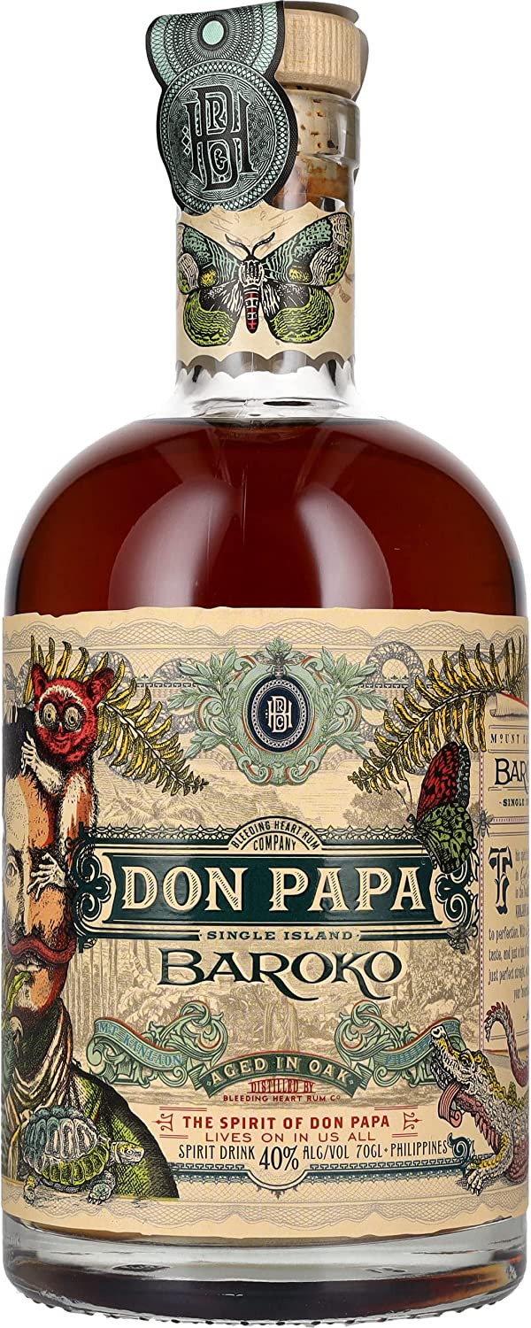 Don Papa, auch Papa Isio genannt, gilt als einer der wenigen be-kannten Helden der Philippinischen Revolution. Doch bevor er für die Unabhängigkeit seiner Heimat eintrat, war er ein einfacher Arbeiter auf einer Zuckerrohrplantage. Das Zuckerrohr für Don Papa Rum wird ausschließlich auf der In-sel Negros angebaut, die als die „Zuckerdose“ der Philippinen gilt. Auf dem fruchtbaren, vulkanischen Boden gedeihen dort die süßesten Zuckerrohrarten. Don Papa Rum reift über 7 Jahre lang in Fässern aus amerikanischer Eiche.