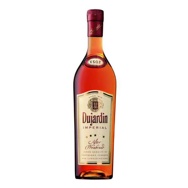 36 % vol.-Premium. Weinbrand in VSOP-Qualität-klassische, unverwechselbare Prägung geben ihm beste französische Weine aus der Charente-Für den vollendeten Weinbrandgenuss reift der Dujardin besonders lange in Limousin-Eichenholzfässern, so erhält er seine verlockend goldene Farbe, den milden Geschmack und sein duftendes Bukett.
