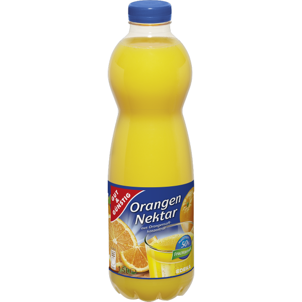 Zutaten: Orangensaft aus Orangensaftkonzentrat, Wasser, Zucker, Antioxidationsmittel: Ascorbinsäure.