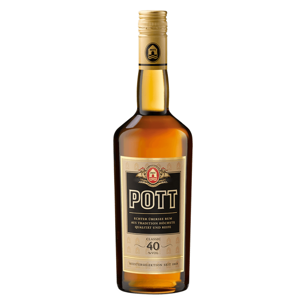 POTT Echter Übersee Rum:Feiner, edler Rum. Goldfarben und echt wie die Sonne der Tropen. Mit erlesenem Aroma und reicher Duft -fülle – ein ausgeprägtes Geschmackserlebnis für anspruchsvolle Genießer. Seit 1848 ist der Name POTTeine Garantie für höchste Qualität und Reife.