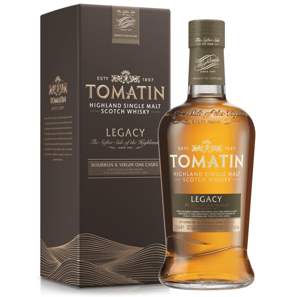 Der Tomatin LEGACY ist ein sehr angenehm zu trinkender und zugleich ein sehr interessanter Single Malt der Tomatin Distillery. Einsteiger und Freunde der schottischen Single Malts werden gleichermaßen entzückt sein, da er neben seinen sehr fruchtigen Aromen bereits einen ansprechenden Körper mit einigem Tiefgang besitzt. Der LEGACY Single Malt wurde in einer Kombination von Bourbon Barrels und neuen unbenutzten Eichenfässern gelagert. Preislich liegt er deutlich unter dem 12-jährigen Single Malt von Tomatin.